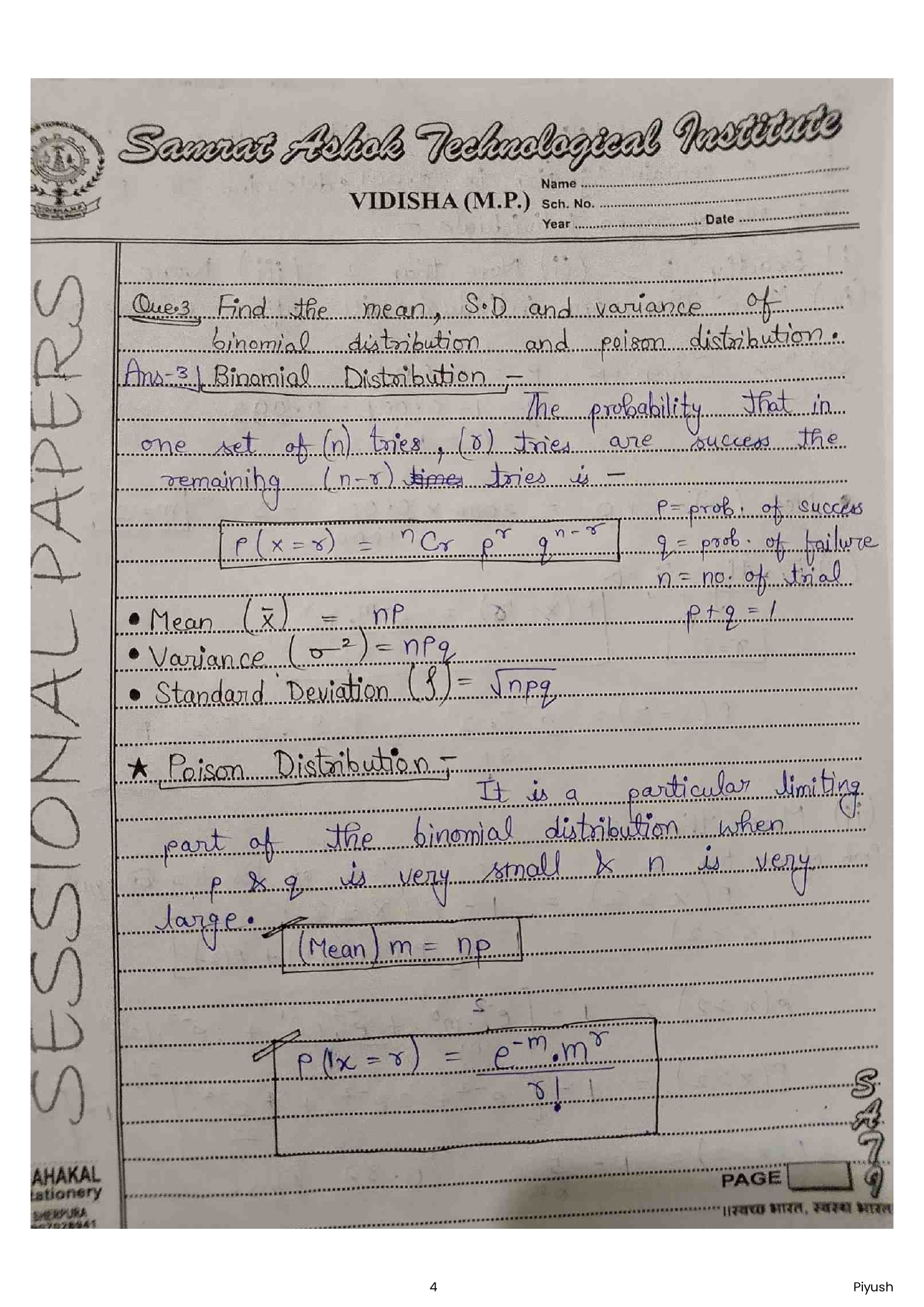 Maths (Statistics : Probability & Differential Equation)
